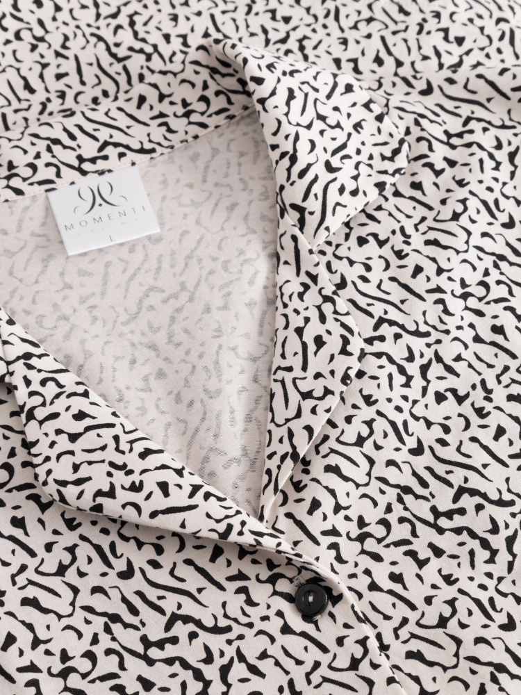 Pijamale de damă din material moale, plăcut la atingere. Decolteu în V, închidere cu nasturi, finisat cu guler. Croială lejeră, confortabilă. Fabricat din materiale naturale. Proiectat și cusut în Polonia.