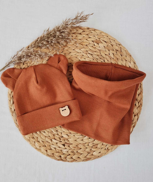 O pălărie impresionantă cu urechi. Perfectă ca pălărie pentru zilele plăcute de toamnă. Confectionata din bumbac moale si placut care se intinde perfect si se adapteaza la capul copilului.