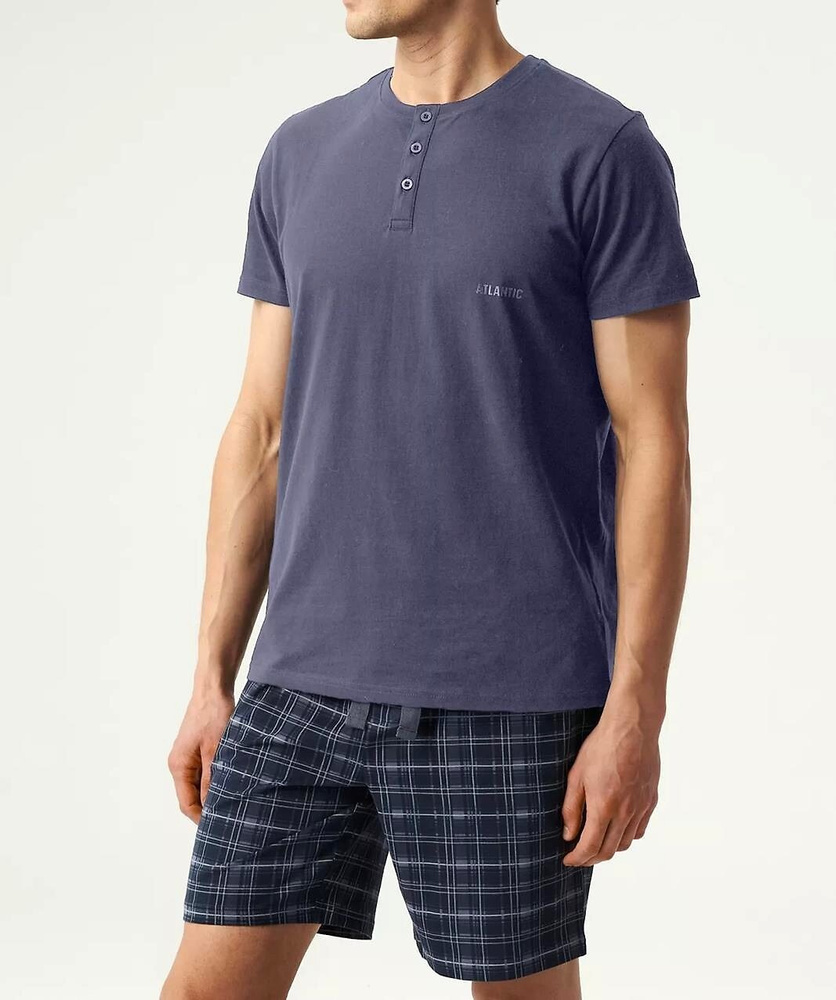 NMP-380 Pijamale bărbați cu mâneci scurte, Atlantic - bleumarin