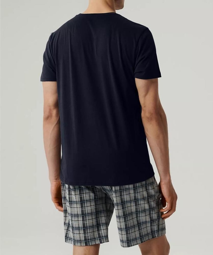 NMP-380 Pijamale bărbați cu mâneci scurte, Atlantic - bleumarin și gri
