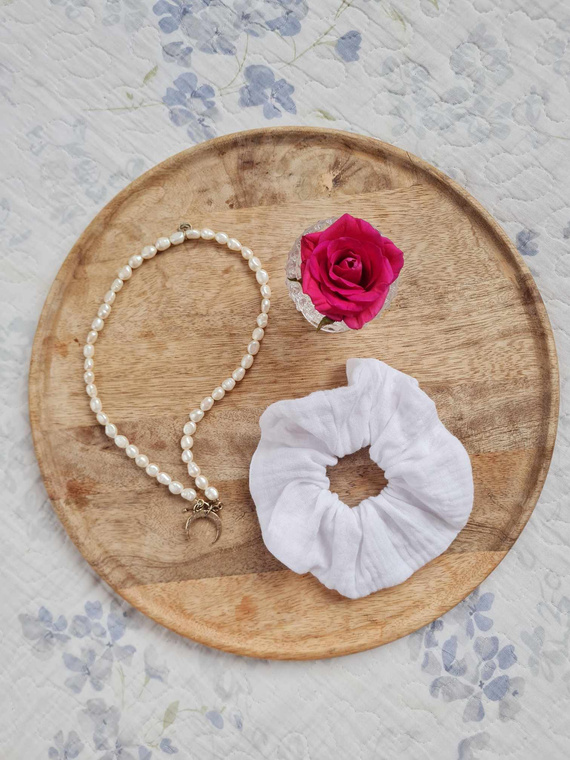 Banda de păr din muselină GM Scrunchie Marija - albă