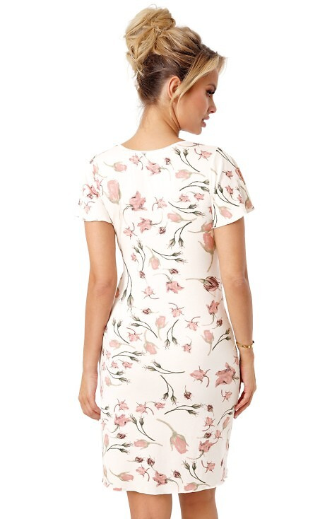 Cămașă de damă din viscoză de calitate superioară, cu mâneci scurte. Decolteu în formă de V împodobit cu dantelă. Banda elastica cu aplecare delicata sub bust.