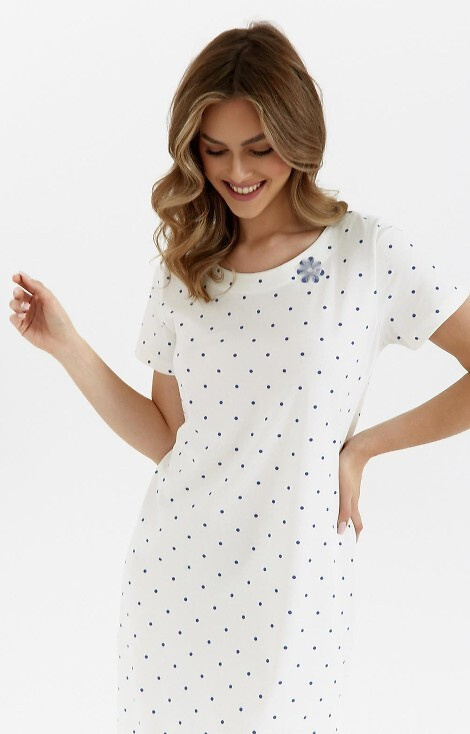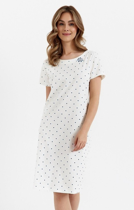 Cămașă de damă cu mâneci scurte din bumbac de calitate superioară cu buline. Extrem de placut pentru piele.