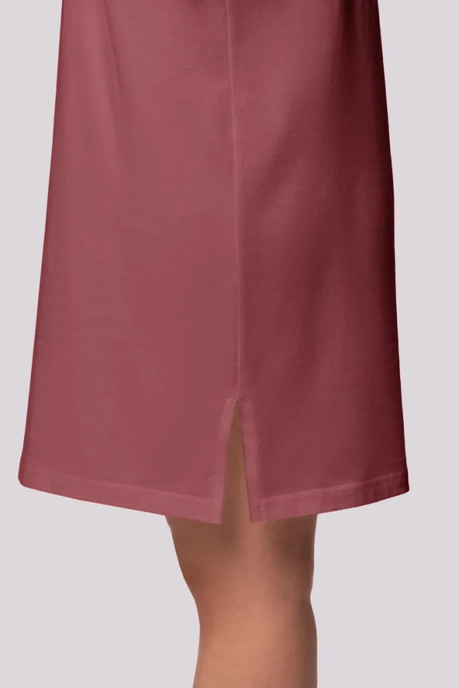 Cămașă de noapte din material moale, respirabil. Lungime deasupra genunchiului. Croiala usor supradimensionata asigura libertatea de miscare si confortul la purtare. Fante laterale la modă adaugă lejeritate și stil subtil.