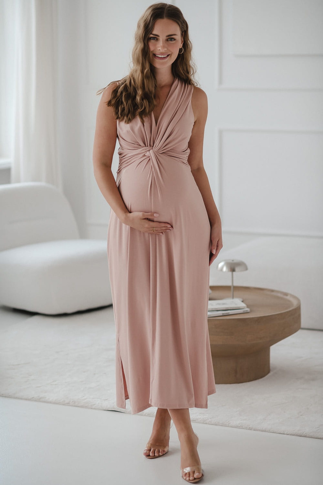 Rochie maxi de maternitate si alaptare Loop Milk&Love, roz pudrat