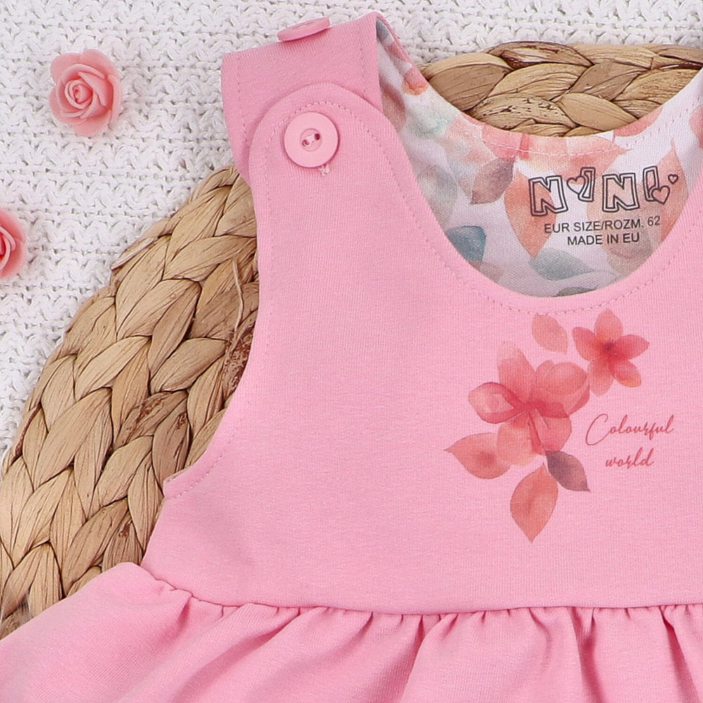 ABN-5427 Flori colorate Rochie din bumbac organic Nini roz