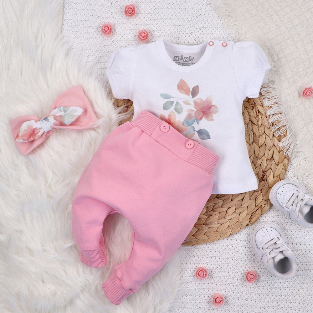 ABN-5426 Flori colorate Pantaloni de trening Nini din bumbac organic, roz