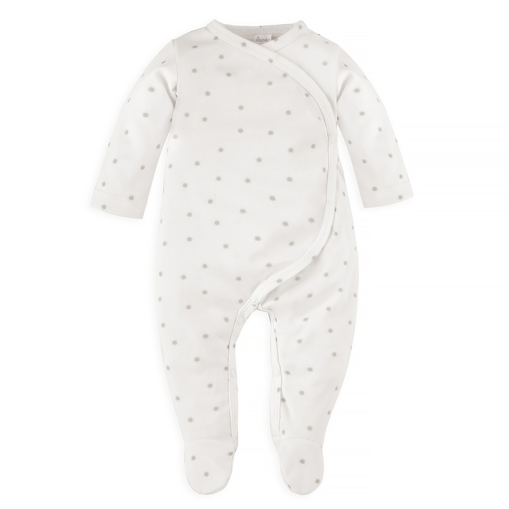 Salopeta legată este confecționată din țesătură delicată 100% bumbac. Decuparea plicului, prinsă complet cu capse sigure fără nichel, face să vă îmbrăcați și să vă schimbați copilul cu adevărat ușor. Crochetul cusut în crotch face ca hainele să se potrivească bine unui copil care poartă scutec. Un salopetă este un element esențial al unei laiete pentru un nou-născut. Este produs în Polonia.