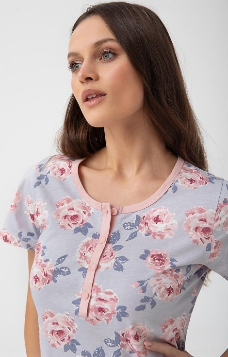 Cămașă de damă din bumbac de înaltă calitate, delicat la atingere, decorată cu model floral.