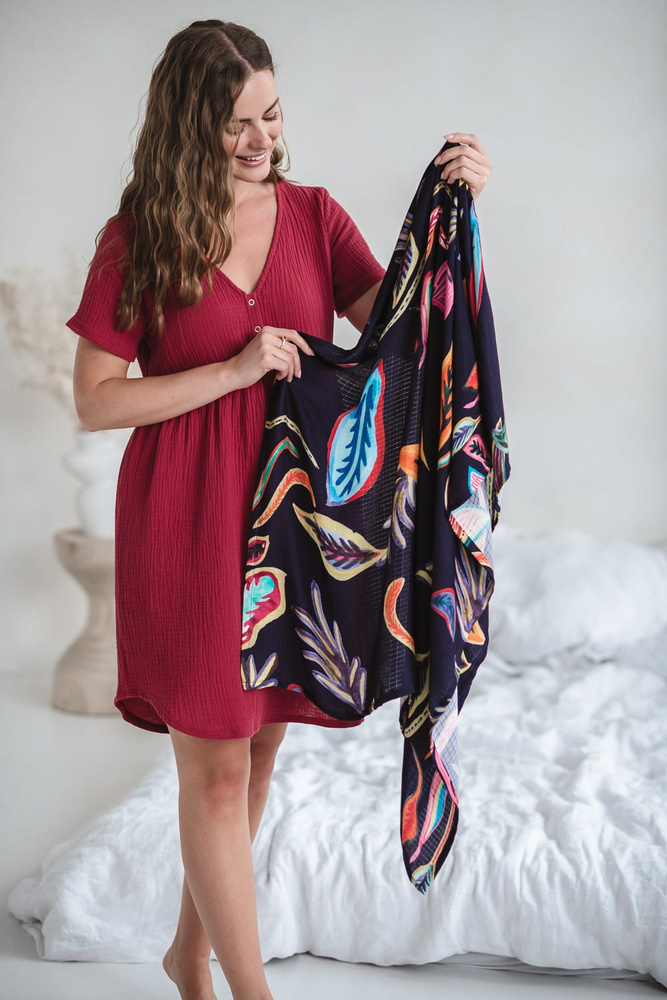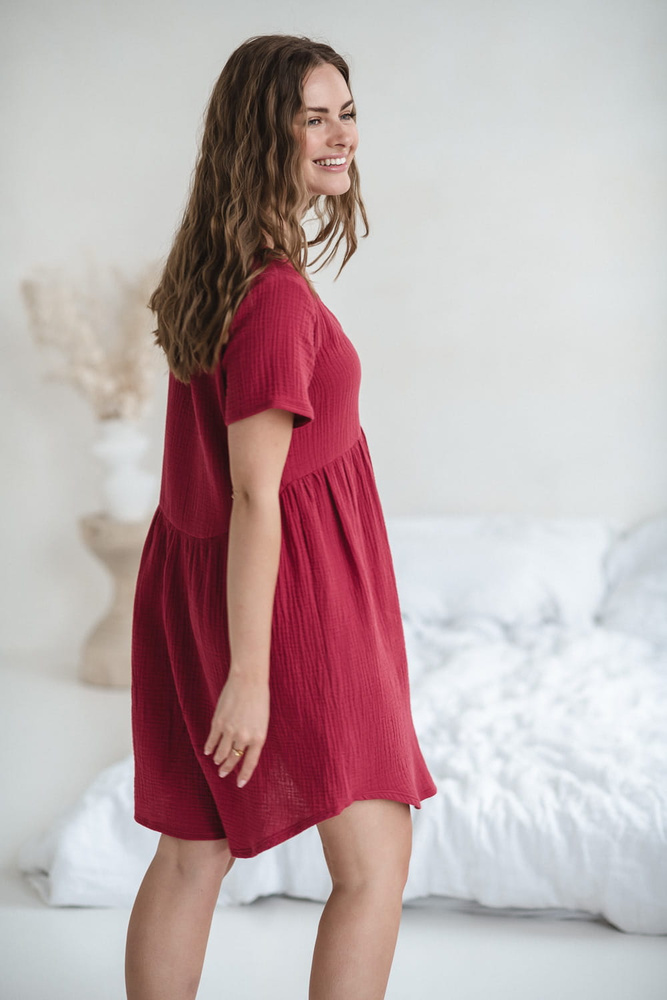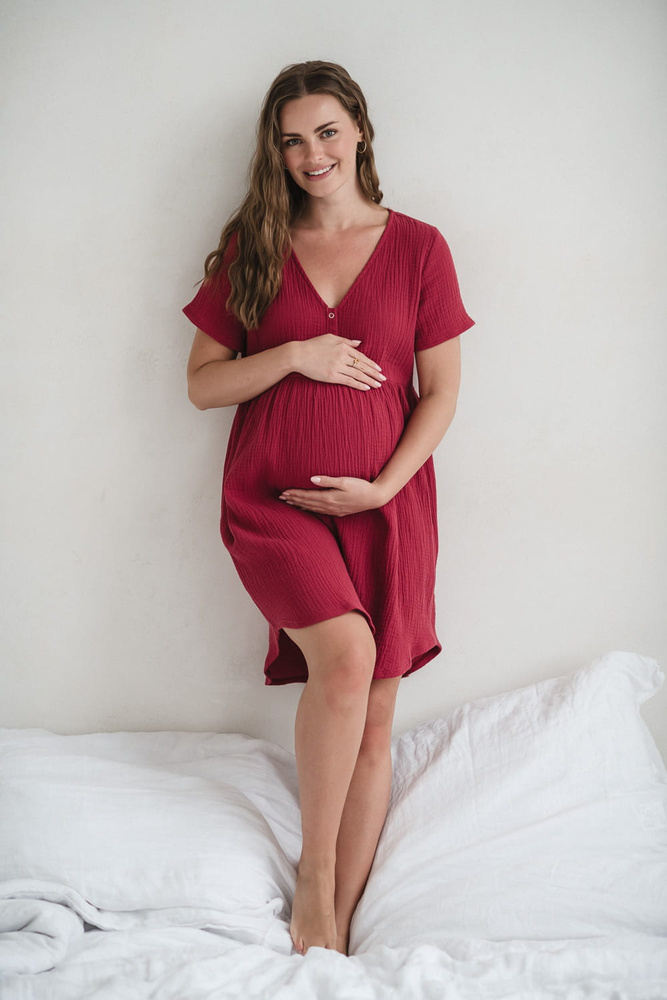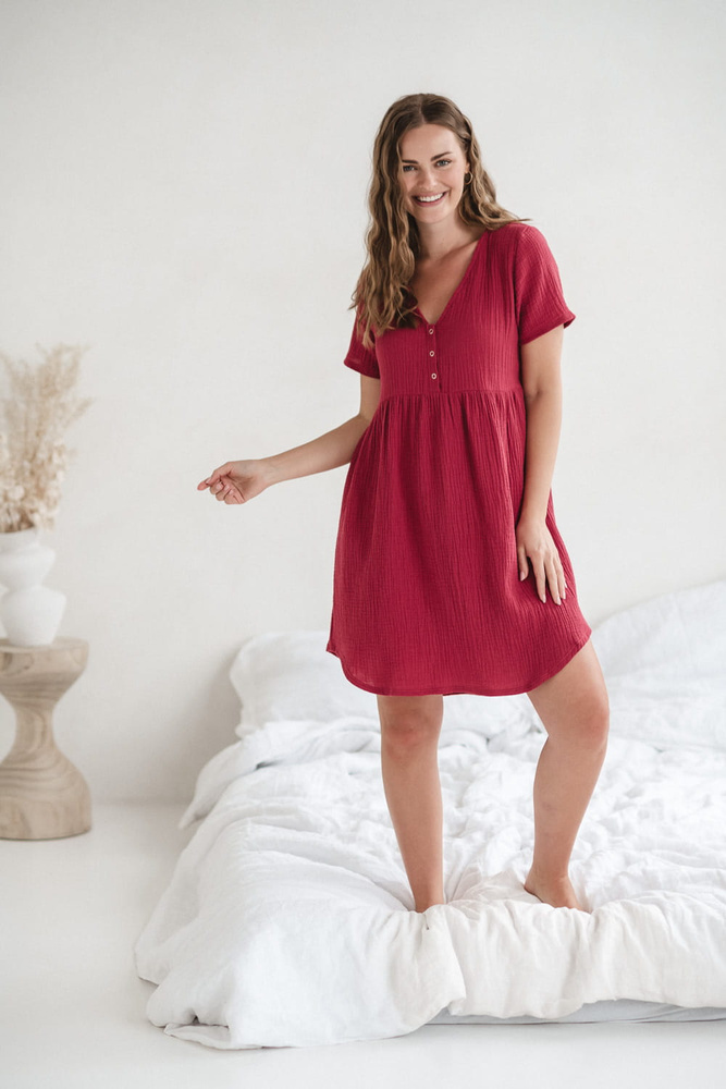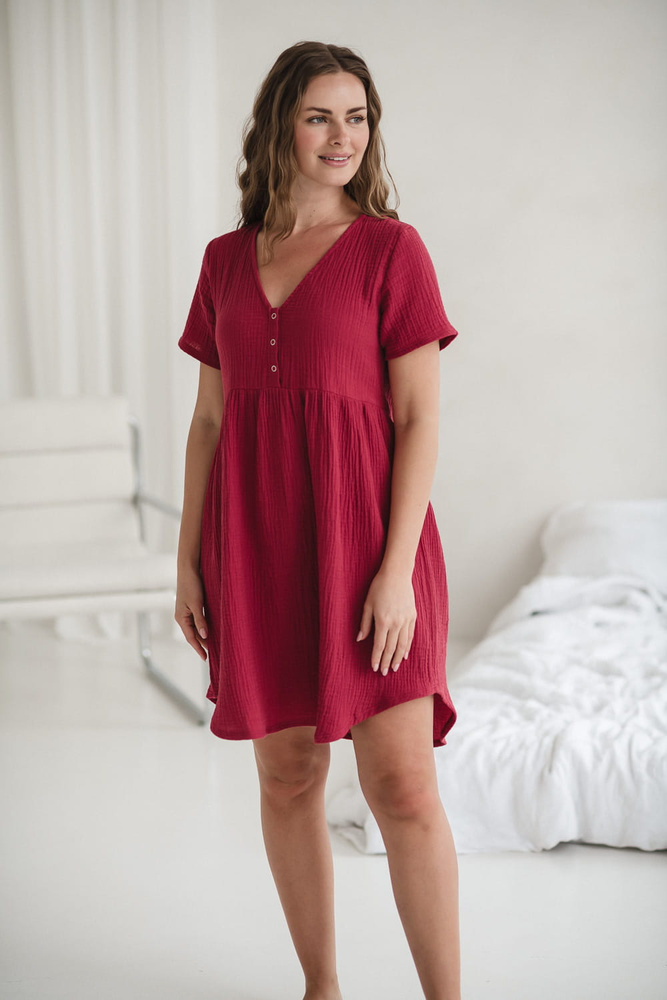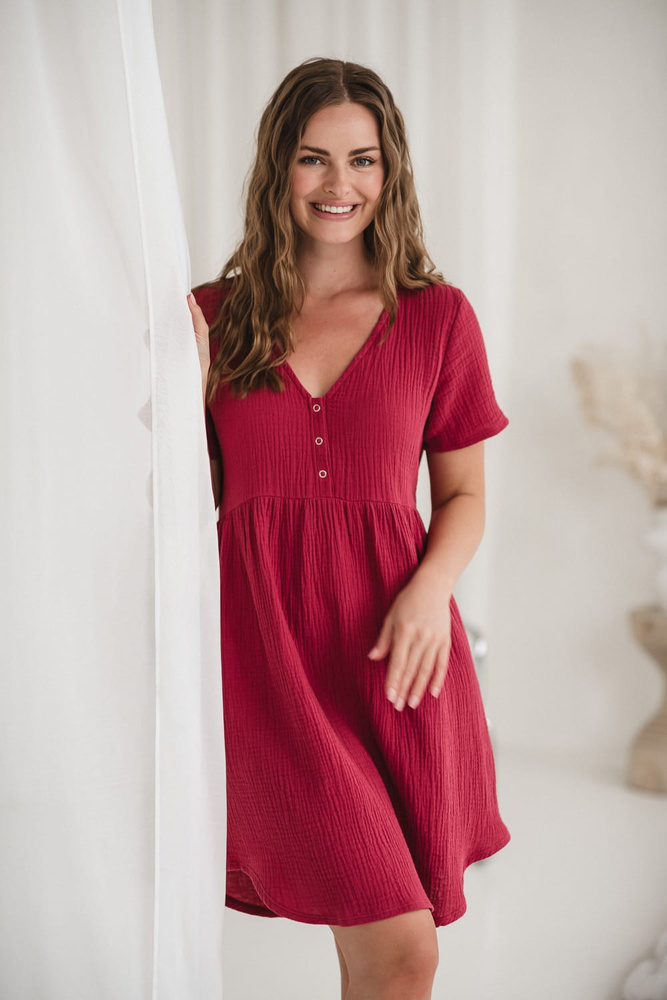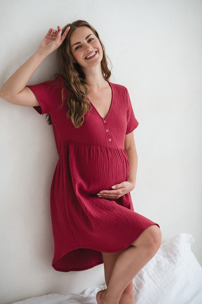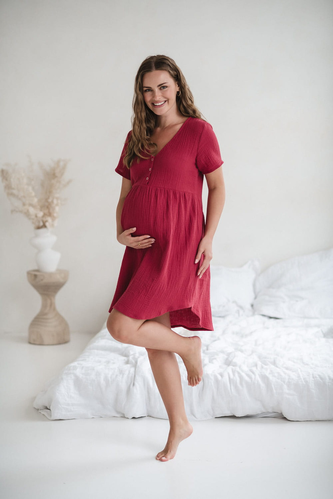Cămașă de noapte de maternitate și alăptare de muselină Aurora Milk&Love raspberry