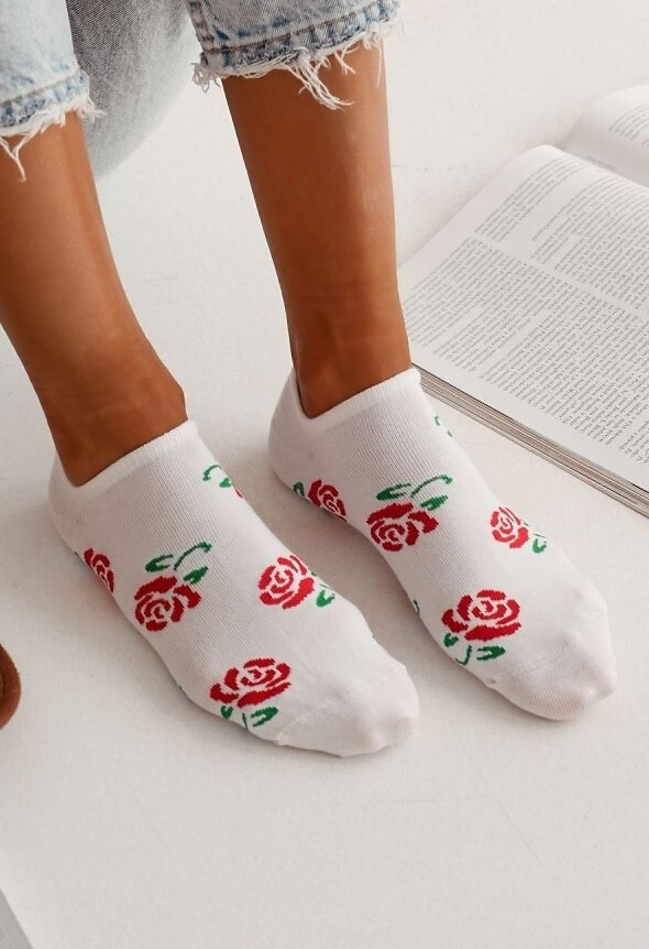 Micropicioare de damă din bumbac decorate cu imprimeu. Cusături plate, manșetă fără presiune. Silicon pe interiorul călcâiului pentru a preveni alunecarea.