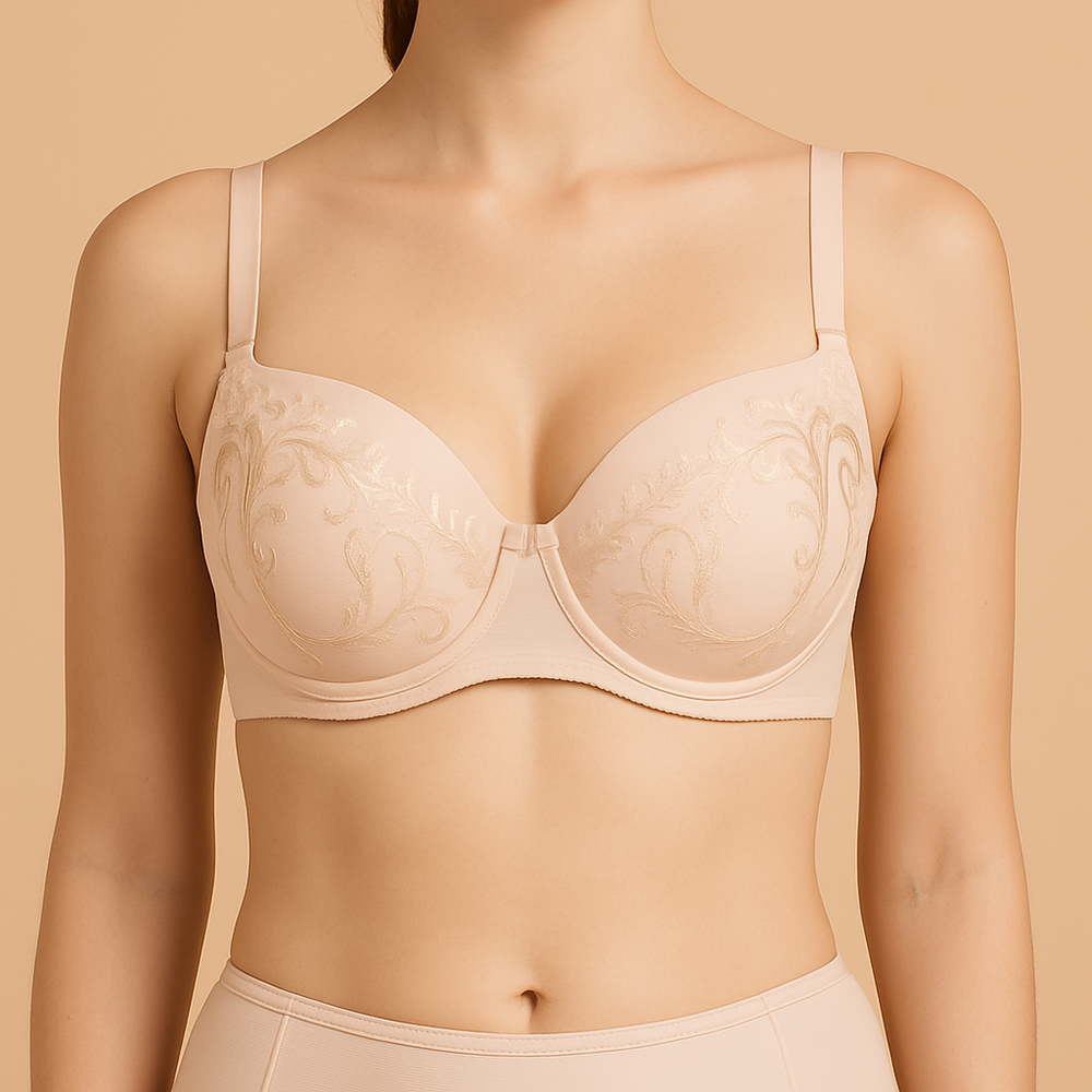 VB-474 de la Vena este un sutien cu cupe întregi într-o nuanță nud, conceput pentru femeile care apreciază confortul și eleganța. Cupele netede, bine construite, cu sârmă oferă suport perfect, iar broderia atractivă adaugă farmec subtil. Modelul este perfect pentru utilizarea de zi cu zi și sub haine mulate.