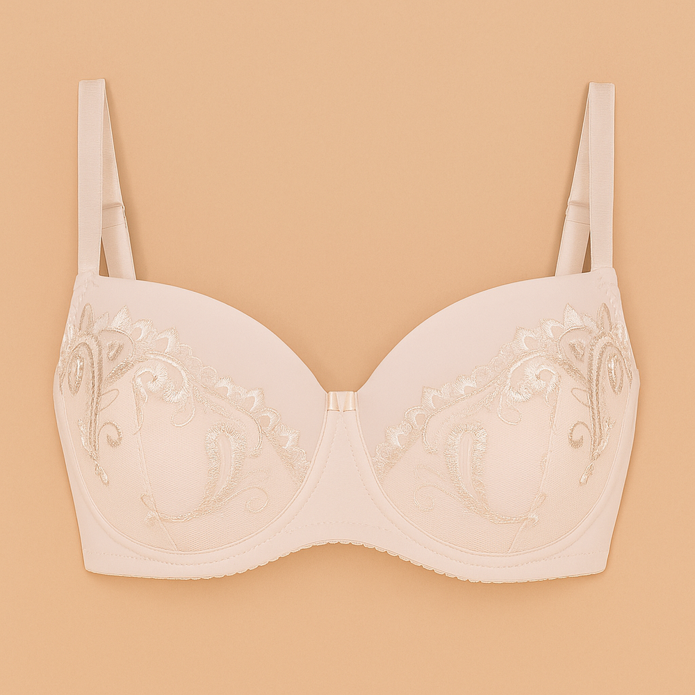 - Sutien nud cu cupe întregi, cu dantelă și cupe pline. Suport și confort excelent pe tot parcursul zilei.