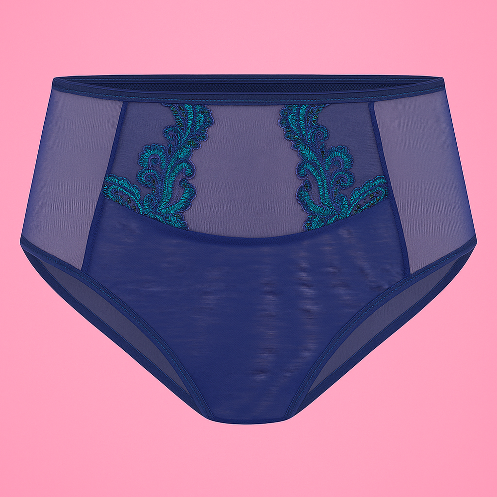 Slip dama VF-474 - talie inalta, dantela, confort Vena bleumarin-verde