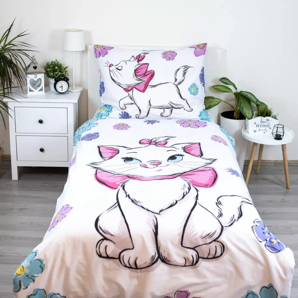 - Marie Cat Disney JF 02 lenjerie de pat copii - 140x200 + 70x90. 100% bumbac, moale, colorat, cu pisica Marie. Perfect pentru un pat pentru copii.