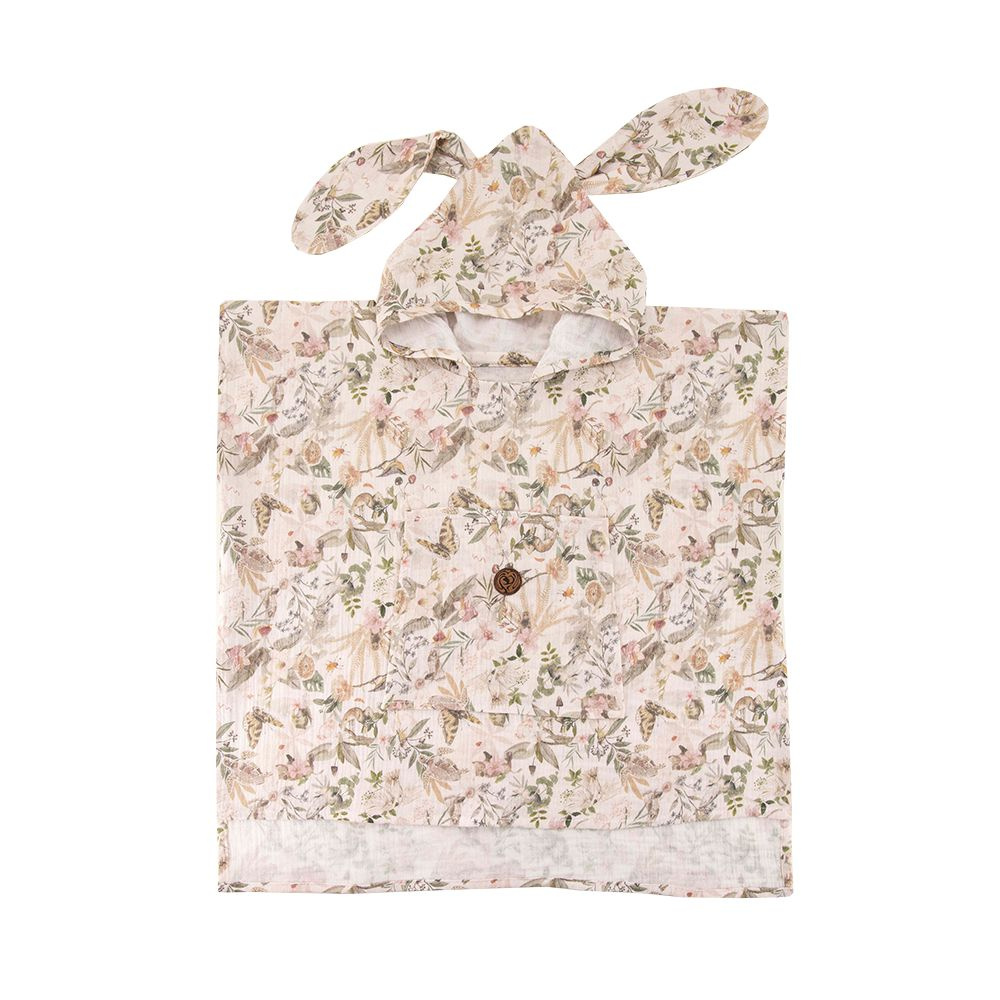 Un poncho de baie de muselina cu gluga este solutia perfecta pentru cei mici dupa baie, la piscina sau in timpul unei vacante la mare. Fabricat din bumbac muselina 100% de cea mai buna calitate, este extrem de moale, usor si absoarbe apa perfect.