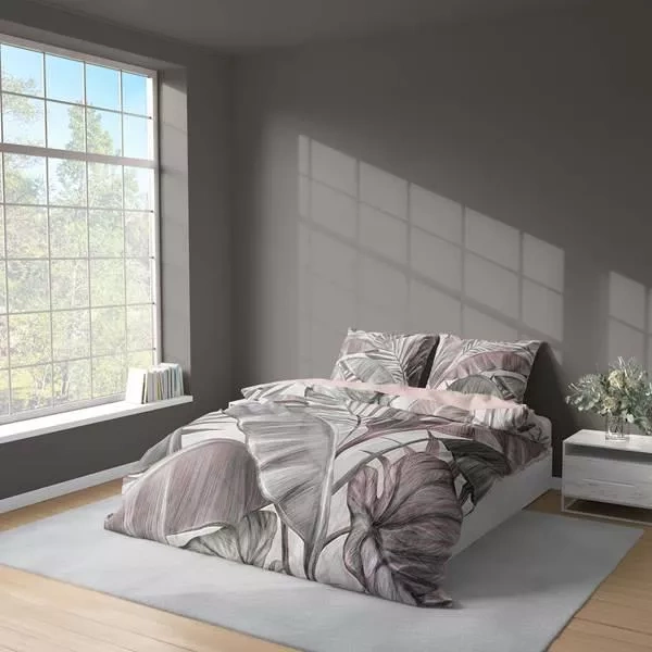 5435 A Lenjerie de pat din microfibră 3D Tropical Powder Leaves – Detexpol
