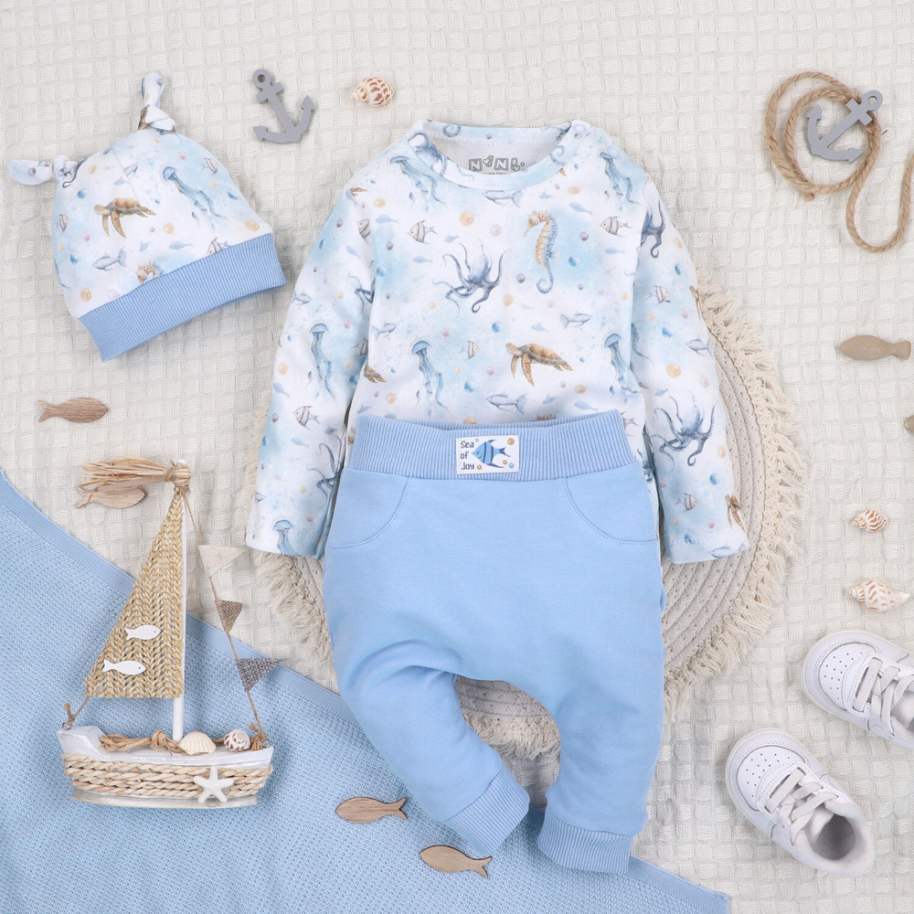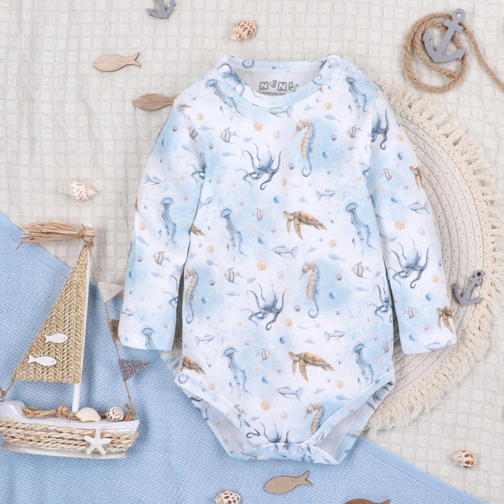 • Body pentru bebe Nini Sea Of Joy - 100% bumbac organic, maneci lungi, inchidere confortabila cu capse.