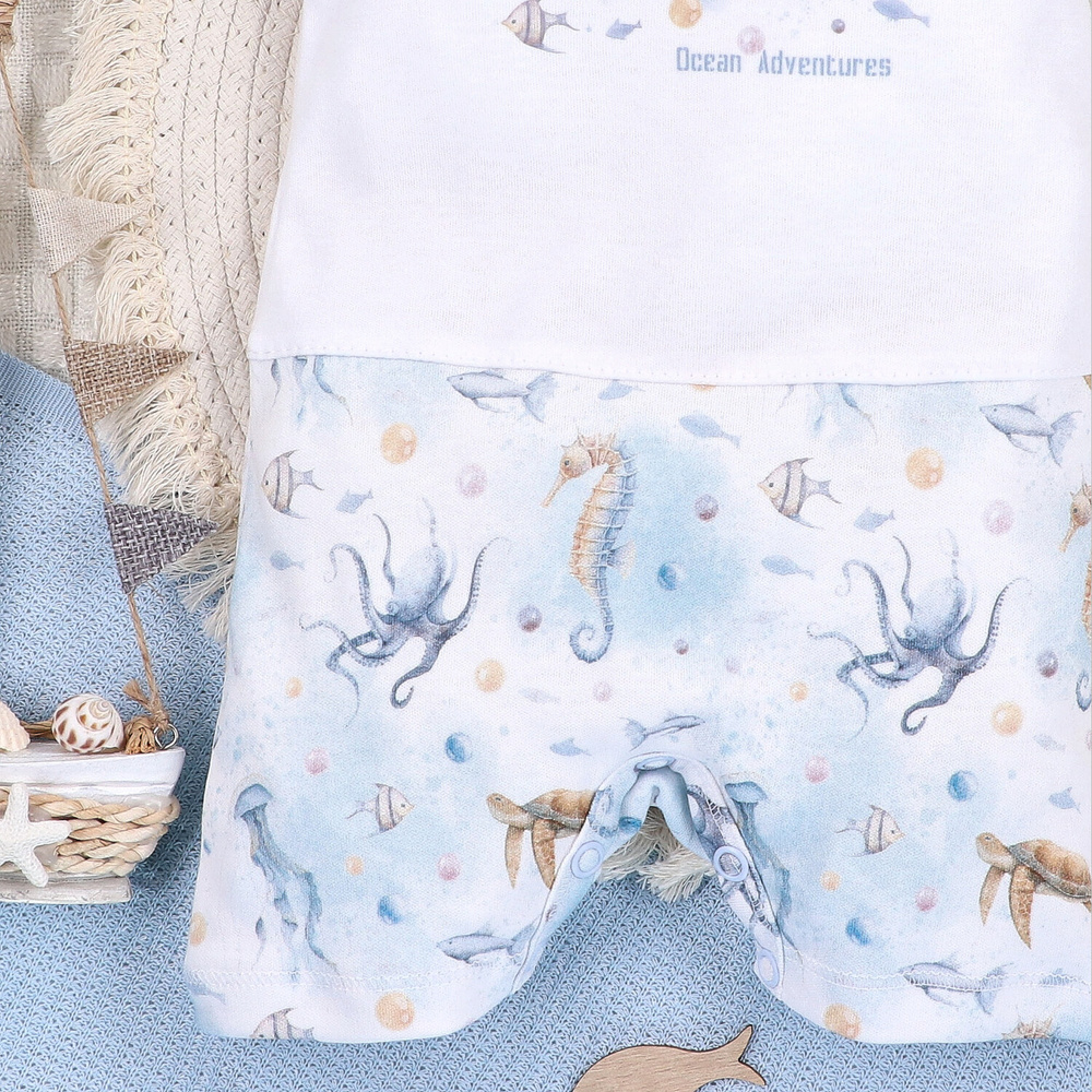 • Rampers Sea Of Joy Nini - 100% bumbac organic, usor, cu capse, confortabil pentru zilele calduroase.