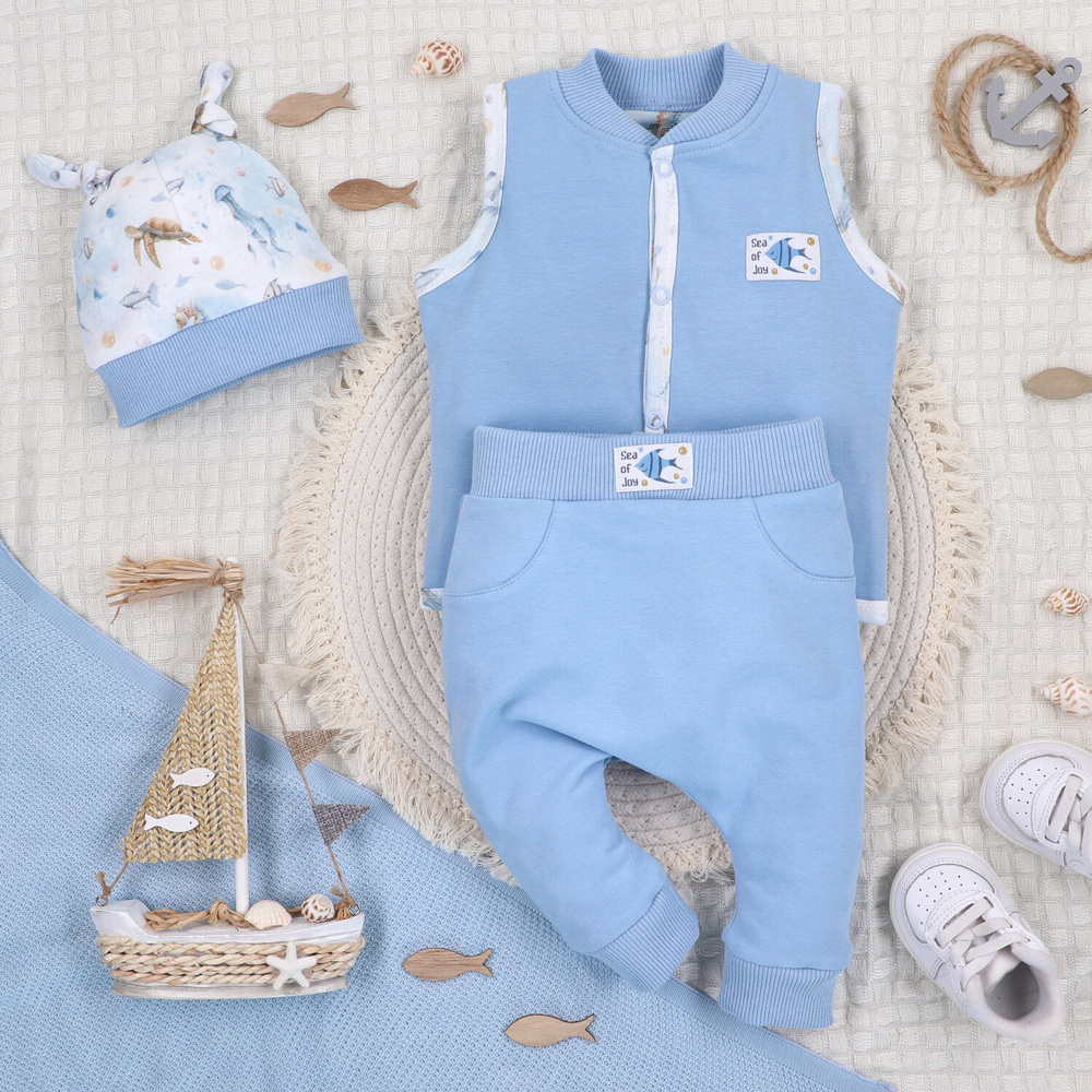 Pantalonii de trening pentru copii Sea Of Joy de la Nini sunt o solutie confortabila si practica pentru utilizarea de zi cu zi. Fabricate din bumbac organic 100%, sunt moi, aerisite și prietenoase cu pielea delicată a copiilor. Talia elastică și picioarele cu șnur asigură o potrivire perfectă și confort în timpul jocului sau odihnei. Designul universal și minimalist al Sea Of Joy face ca pantalonii să se potrivească în diverse stiluri - perfecti pentru acasă, grădiniță sau pentru o plimbare.