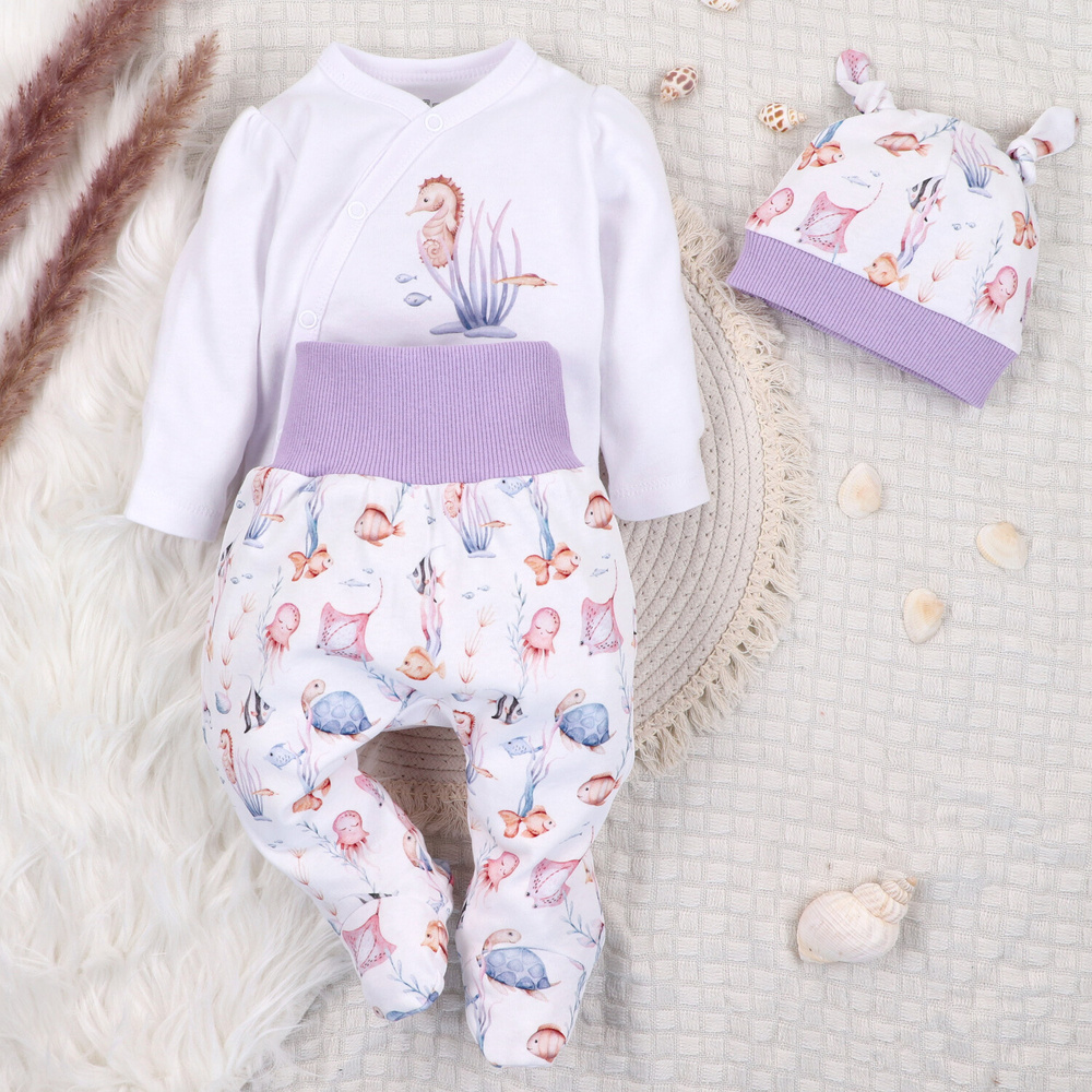 ABN-5472 Body Wrap cu mâneci lungi Underwater World Nini alb – bumbac organic, pentru bebeluși
