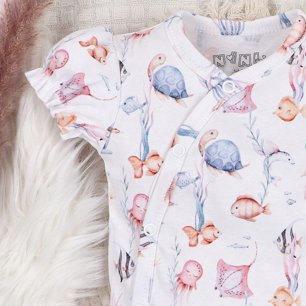 • Body Nini Underwater World - 100% bumbac organic, mâneci scurte, plic, butoane confortabile.