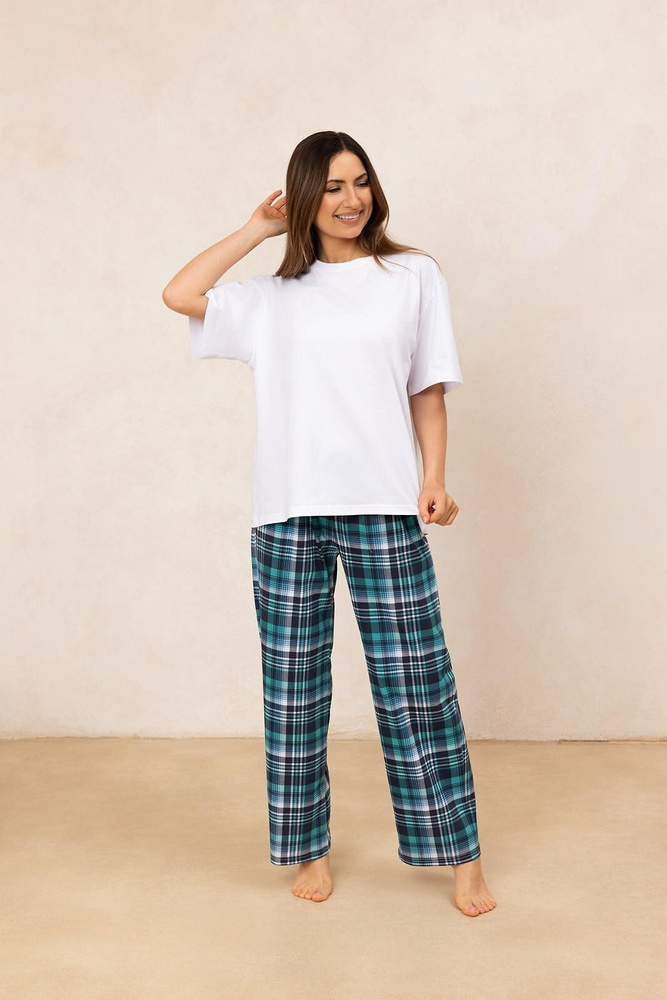 Setul este format dintr-un tricou cu mâneci scurte și model subtil și pantaloni scurți confortabili. Croiala lejera nu restrictioneaza miscarea, iar materialul moale face ca pijamalele sa fie potrivite nu doar pentru dormit, ci si pentru relaxarea diminetii cu cafea sau odihna de seara.