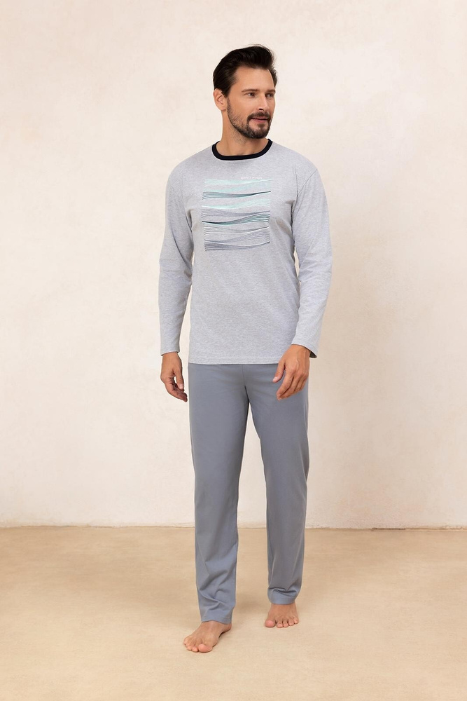 Regina 492 gri – pijamale bărbați din bumbac cu mâneci lungi, croială clasică
