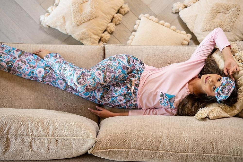 Pijamale dama MK33 Meant To Be Belle Reverie, roz - bumbac, maneci lungi, stil romantic