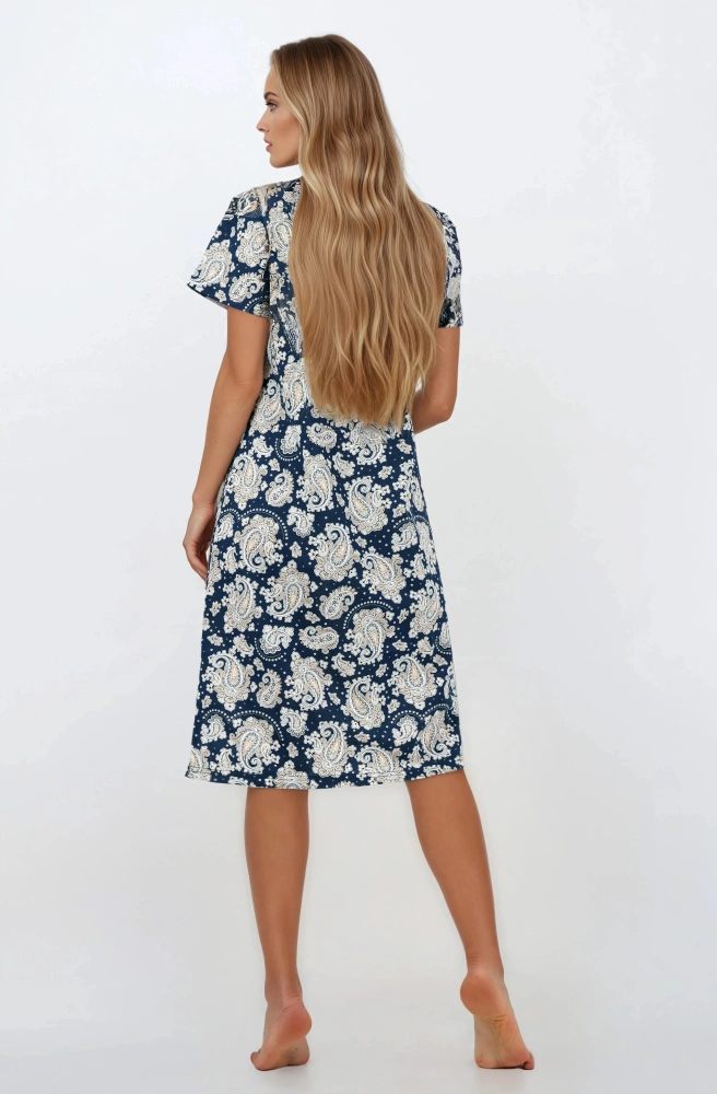 Saphire Nights de la Momenti Per Me este o cămașă de noapte clasică care combină naturalețea cu confortul. Fabricat 100% din bumbac moale, respirabil, este perfect pentru nopțile mai calde. Mâneca scurtă asigură libertate de mișcare, iar croiala simplă, feminină, subliniază silueta delicată. Aceasta este o propunere perfectă pentru femeile care apreciază stilul clasic, materialele de înaltă calitate și confortul de dormit. Perfect pentru utilizarea de zi cu zi și pentru împachetarea unei călătorii. Design polonez, suflet italian – Momenti Per Me.