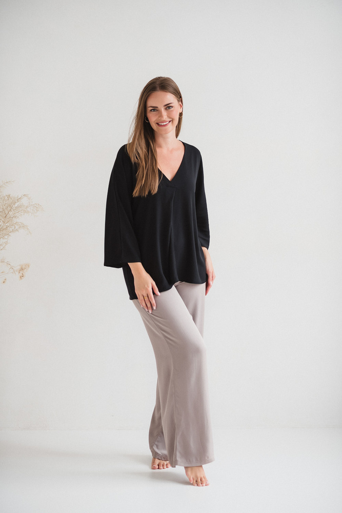 Bluză de maternitate Mamafullness Milk&Love, neagră – viscoză, mâneci 3/4, oversize