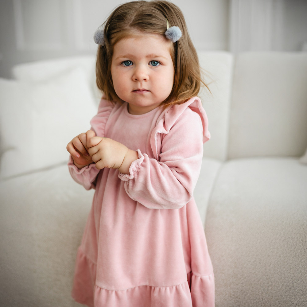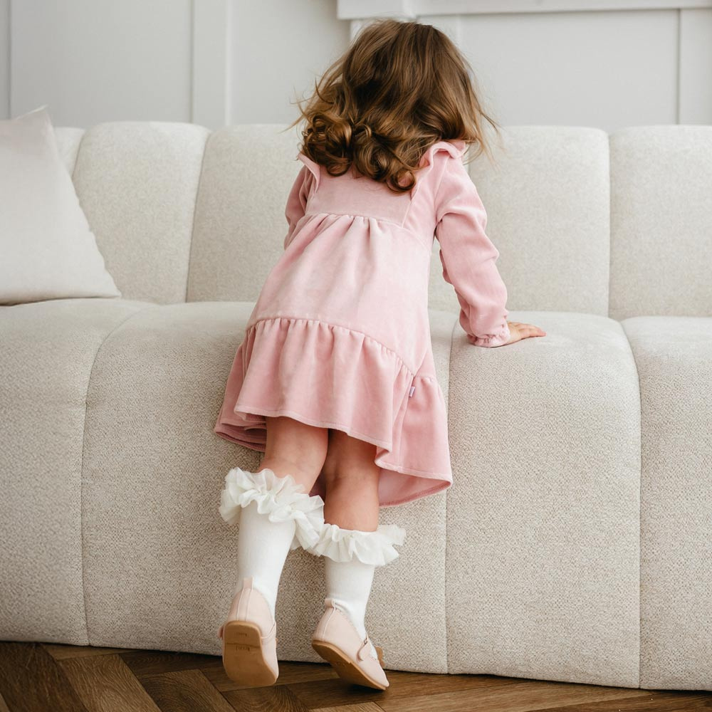 Rochia din velur Fluffy Tails de la Eevi este o combinație perfectă de confort și eleganță. Confectionat din catifea moale de inalta calitate, este placut la atingere si delicat pentru pielea copilului.