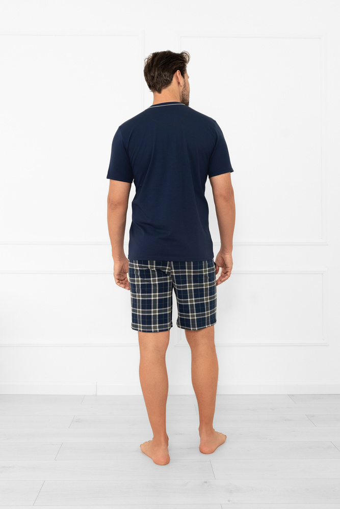 Pijama pentru bărbați Andreas - mânecă scurtă, pantaloni lungi, bumbac Modă italiană - albastru marin/print