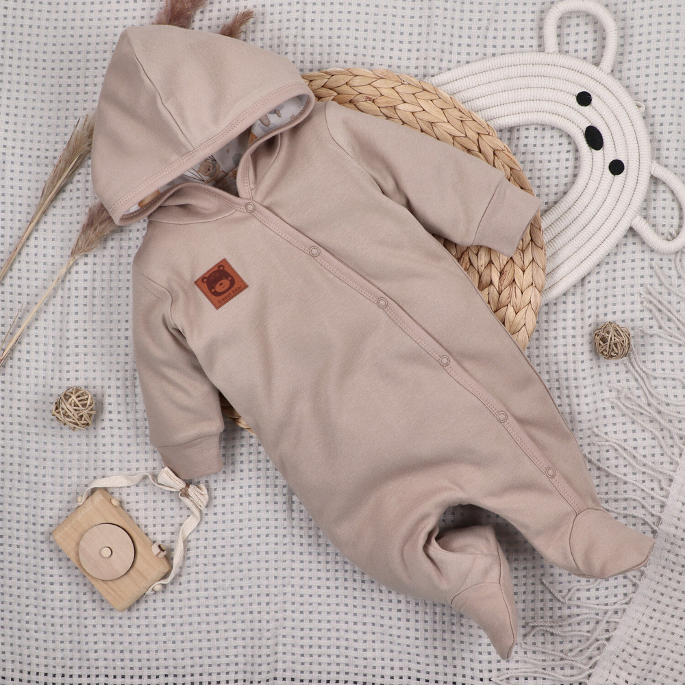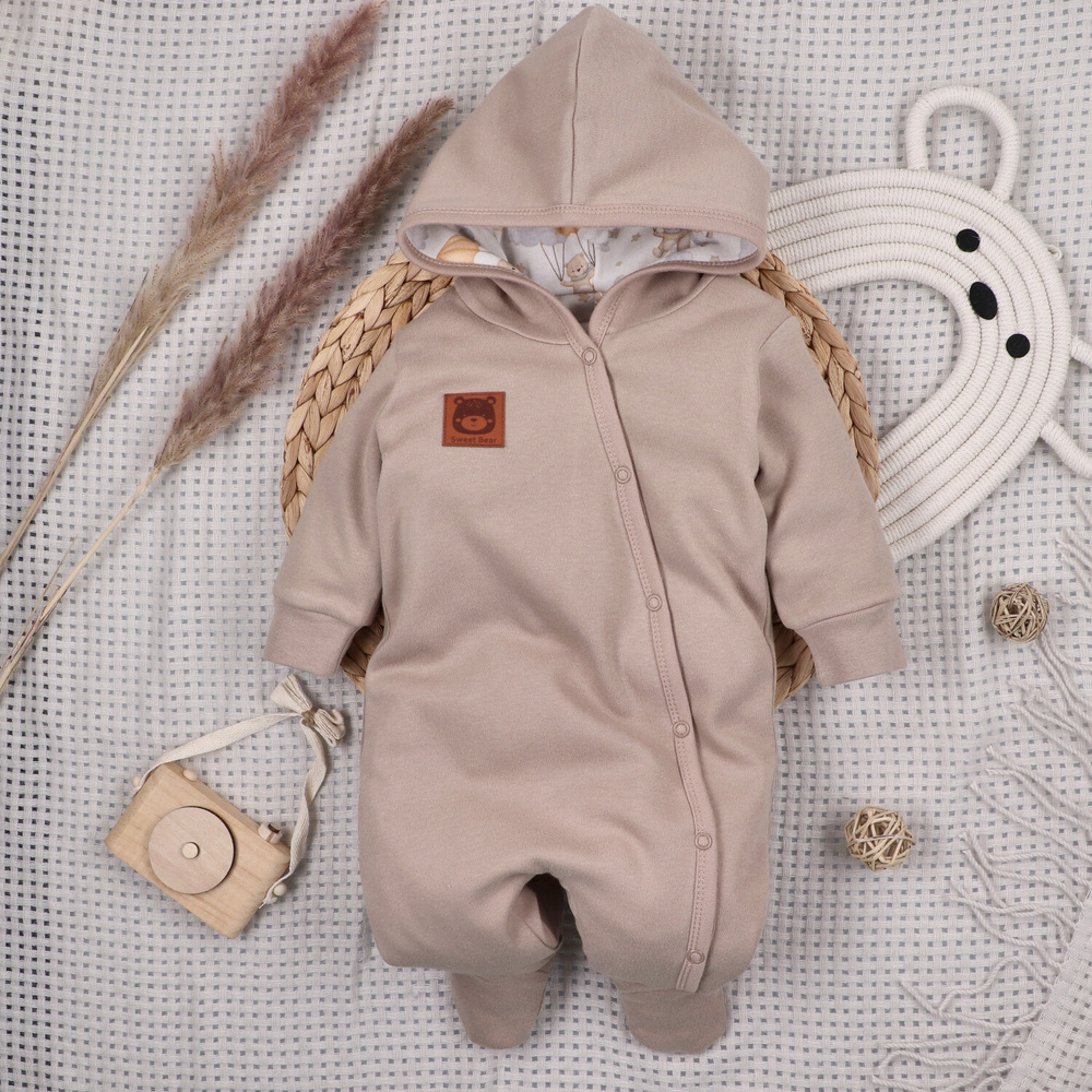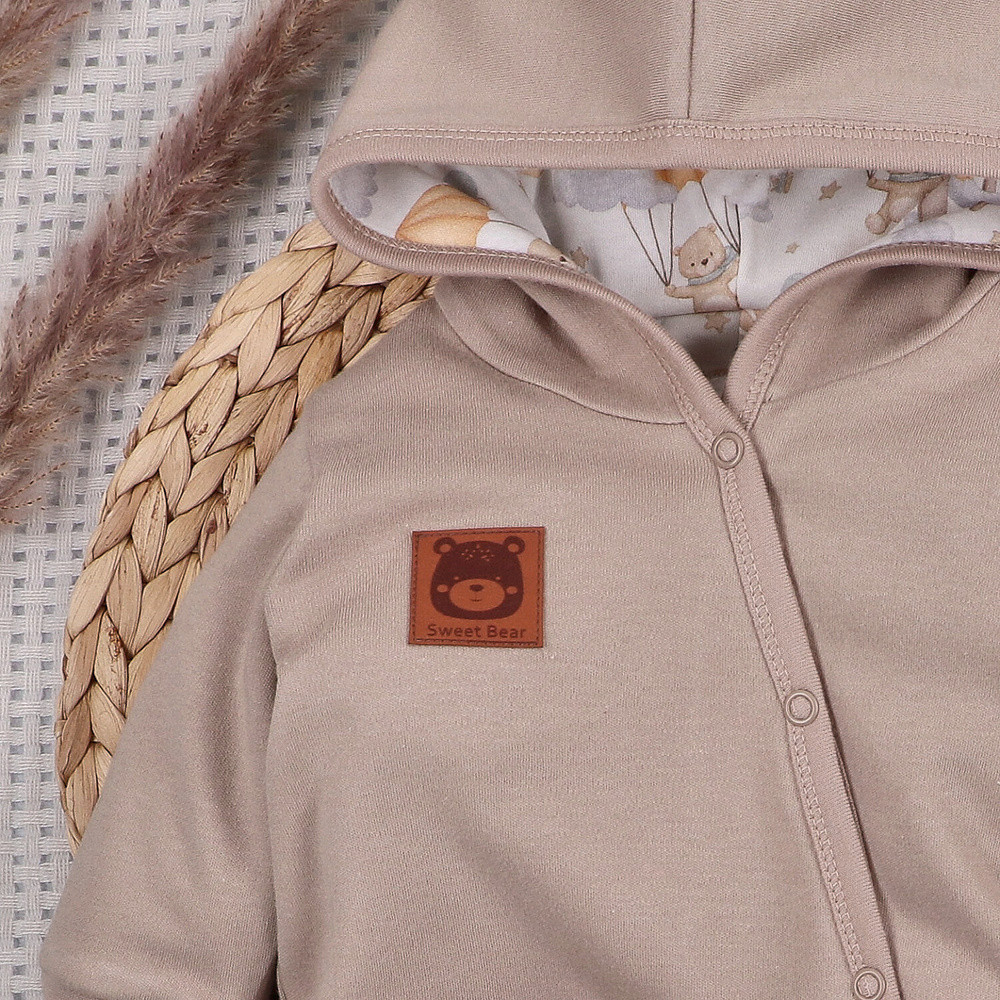 Închiderea practică facilitează schimbarea rapidă a hainelor, iar croiala confortabilă asigură libertate deplină de mișcare. Culorile neutre inspirate de motivul cerului fac costumul să arate elegant și universal - perfect atât acasă, cât și la plimbare.