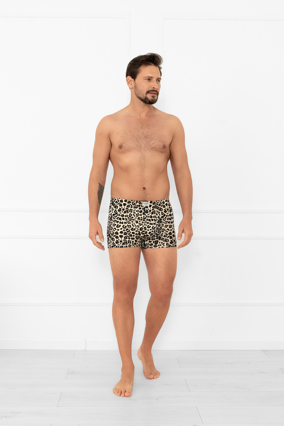 Modelul este decorat cu un imprimeu leopard izbitor, care conferă lenjeriei un caracter prădător și la modă. Croiala mulată asigură confort, în timp ce centura elastică cu cordon cusută în tunel garantează o potrivire strânsă, fără presiune.