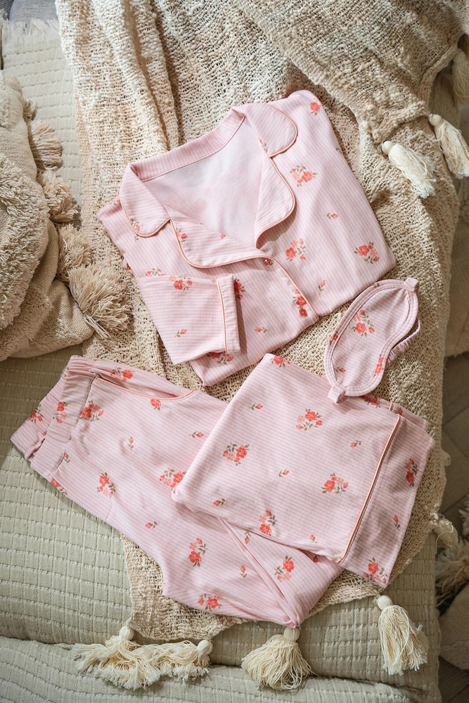 Designul cu nasturi conferă acestor pijamale un aspect clasic, în timp ce modelul subtil Rose Devotion le evidențiază stilul unic. Aceste pijamale au fost atent realizate pentru a asigura confort deplin și un aspect atractiv în timpul relaxării acasă.