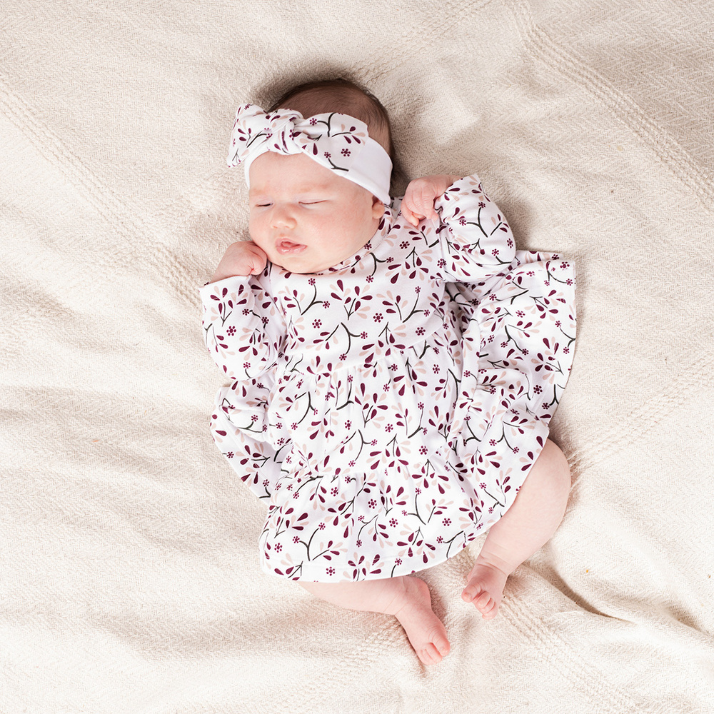 • Bentita pentru fete Nicol Alisa cu fundita cu model floral. Confortabil, flexibil și moale - perfect încă din primele zile de viață.