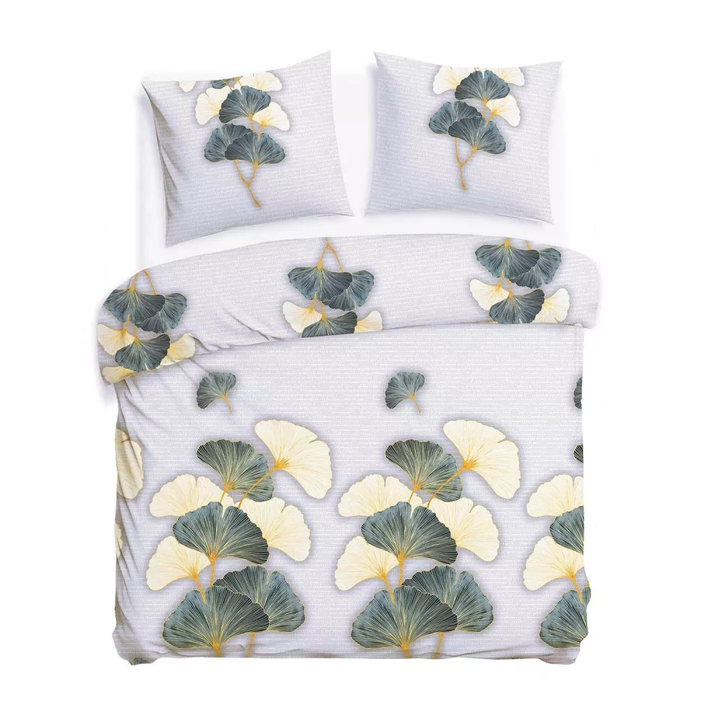 31510/1 Set de lenjerie de pat din flanel Flanellove Darymex gri verde frunze de ginkgo – set, 100% bumbac, cald și moale