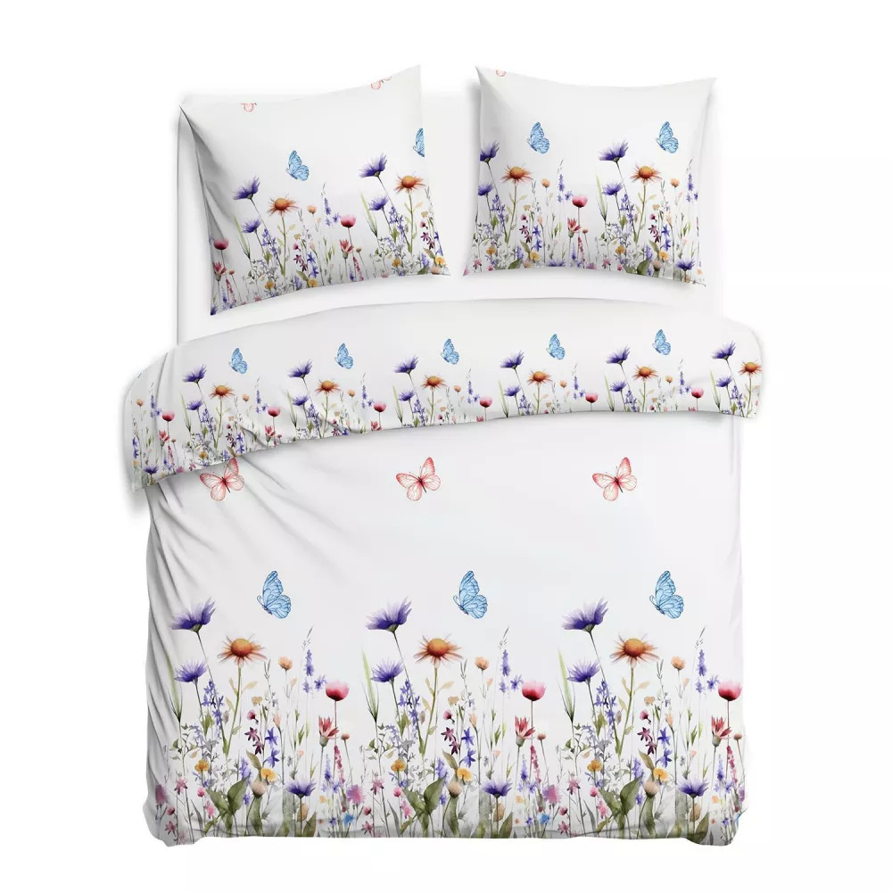 31512/1 Set de lenjerie de pat din flanel Flanellove Darymex flori albe colorate - set, 100% bumbac, călduroasă și moale