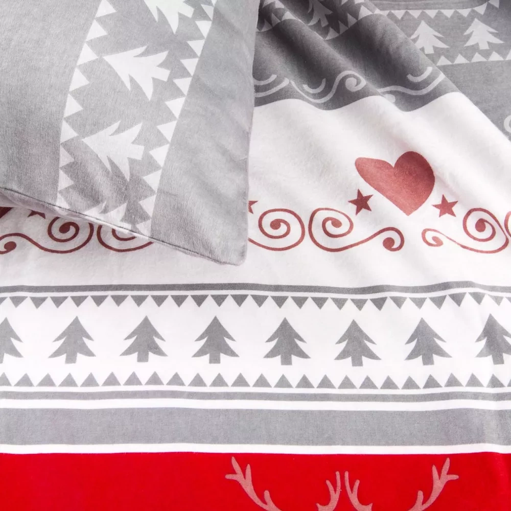 31516/1 Set de lenjerie de pat de Crăciun din flanel Flannellove Darymex gri roșu - set 100% bumbac, călduros și moale