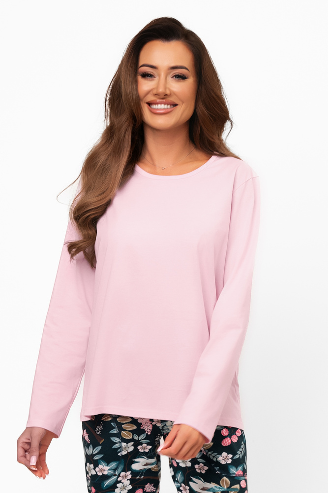 Lenjeria de noapte Marisal este un set confortabil și practic, cusut din bumbac natural certificat. Bluza cu mânecă lungă și decolteu rotund are o croială dreaptă, lejeră și o structură netedă fără imprimeuri. Culoarea deschisă adaugă luminozitate și îl face perfect nu numai pentru dormit, ci și pentru relaxare acasă. Pantalonii au culori contrastante, iar un model floral subtil în aceeași nuanță se leagă de partea de sus, creând un ansamblu coerent. Talia elastică moale, buzunarele laterale și picioarele ușor conice garantează un confort deplin la purtare. Aceasta este o pijama care va funcționa atât pentru noapte, cât și pentru zi - oricând doriți să vă simțiți confortabil.