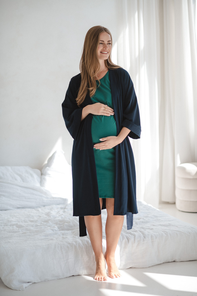 Halat de baie maternitate bleumarin Milk&Love – bumbac cu elastan, confortabil, mâneci 7/8