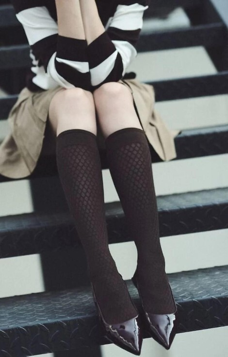 Modelul geometric le conferă o notă modernă, în timp ce manșeta care nu strânge asigură confort fără a strânge. Șosetele până la genunchi sunt finisate cu cusături plate și vârfuri întărite invizibil, sporindu-le durabilitatea și confortul.