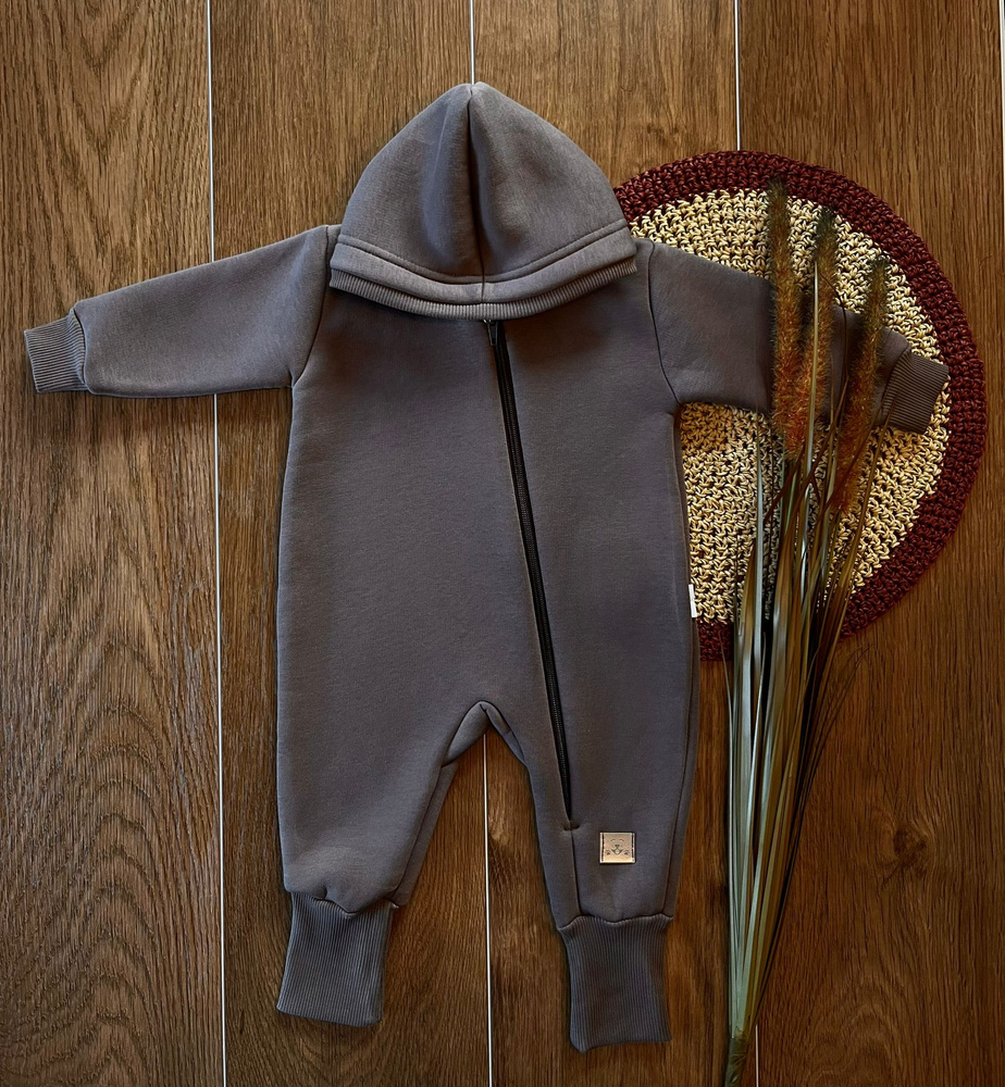 - Salopetă fără picioare Mamatti KS117 Chocolate. Bumbac moale, glugă și închidere cu fermoar – confort și stil pentru micuțul tău în fiecare zi.