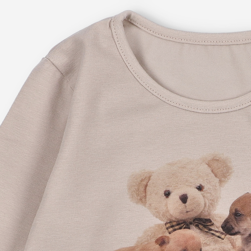 Bluză cu mânecă lungă KAR-3005 Lagarto Verde pentru fete, bej – elegantă, bumbac, producție poloneză