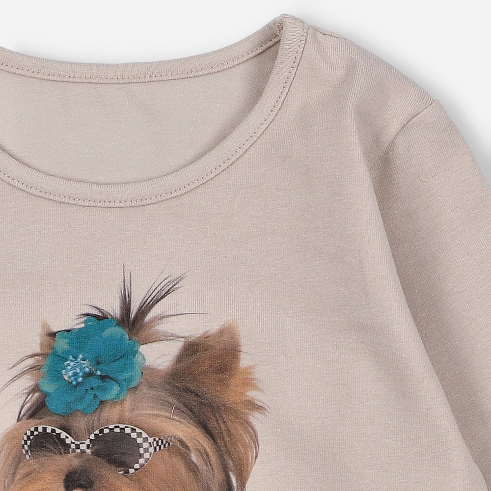 Bluză cu mânecă lungă KAR-3004 Lagarto Verde pentru fete, bej – elegantă, bumbac, producție poloneză