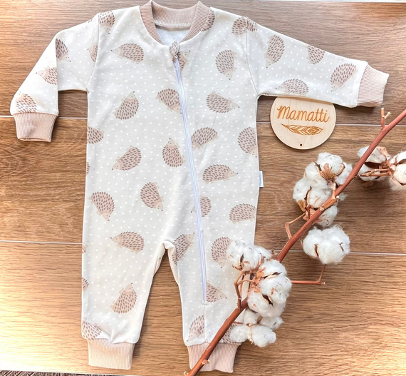 - Salopă pentru bebeluși Mamatti PS15741 cu model arici. Fără picioare, cu fermoar, moale și confortabilă.