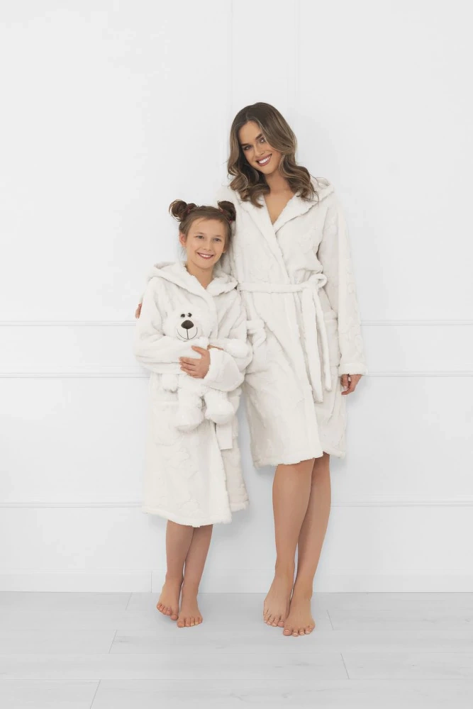 Motivul drăguț al ursulețului dă halatului un caracter unic și un farmec special de basm. Este alegerea perfectă pentru serile răcoroase, diminețile leneșe sau relaxarea de weekend acasă. Colecția Teddy include și modele pentru fete - împreună puteți crea un set drăguț, asortat "mamă și fiică".
