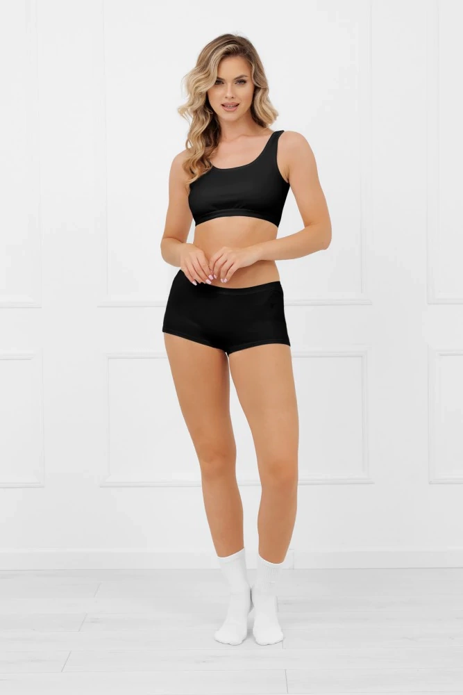 - Pantaloni scurți boxeri pentru femei din bumbac natural cu adaos de elastan. Soft, flexibil și respirabil - ideal pentru uzura de zi cu zi pentru femeile care apreciază confortul și simplitatea.