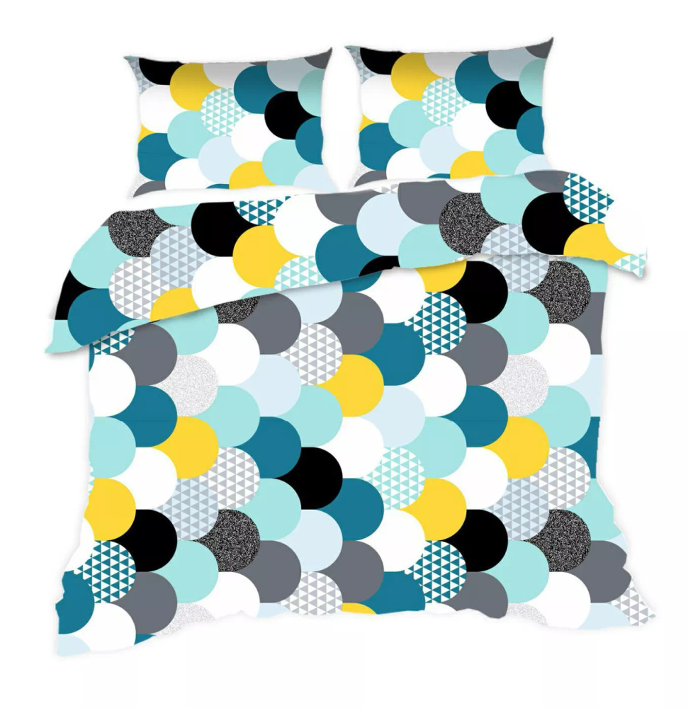 537N Lenjerie de pat clasică din bumbac E24 Lenjerie de pat cu geometrie extra turcoaz – set de 2 piese, 100% bumbac, durabilă, colorată